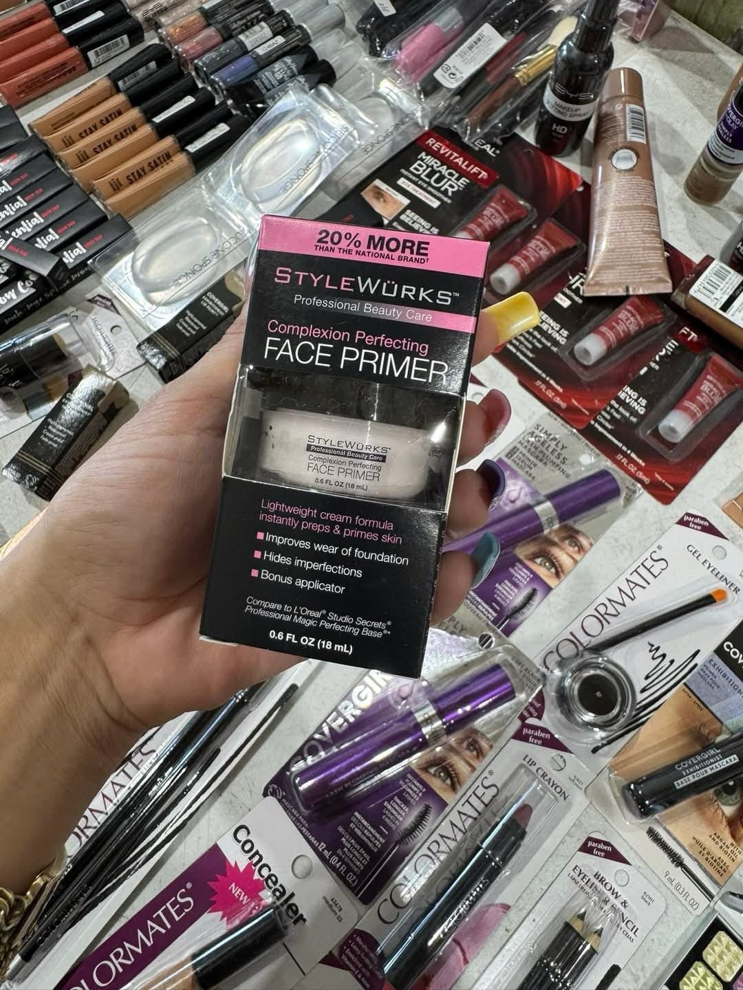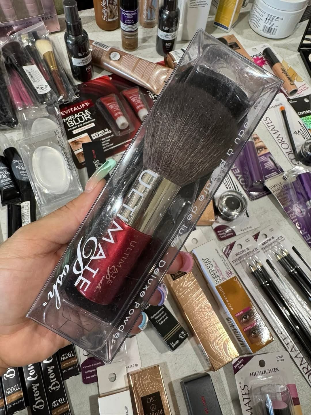 Makeup products (foundation, lipstick, mascara, powder)