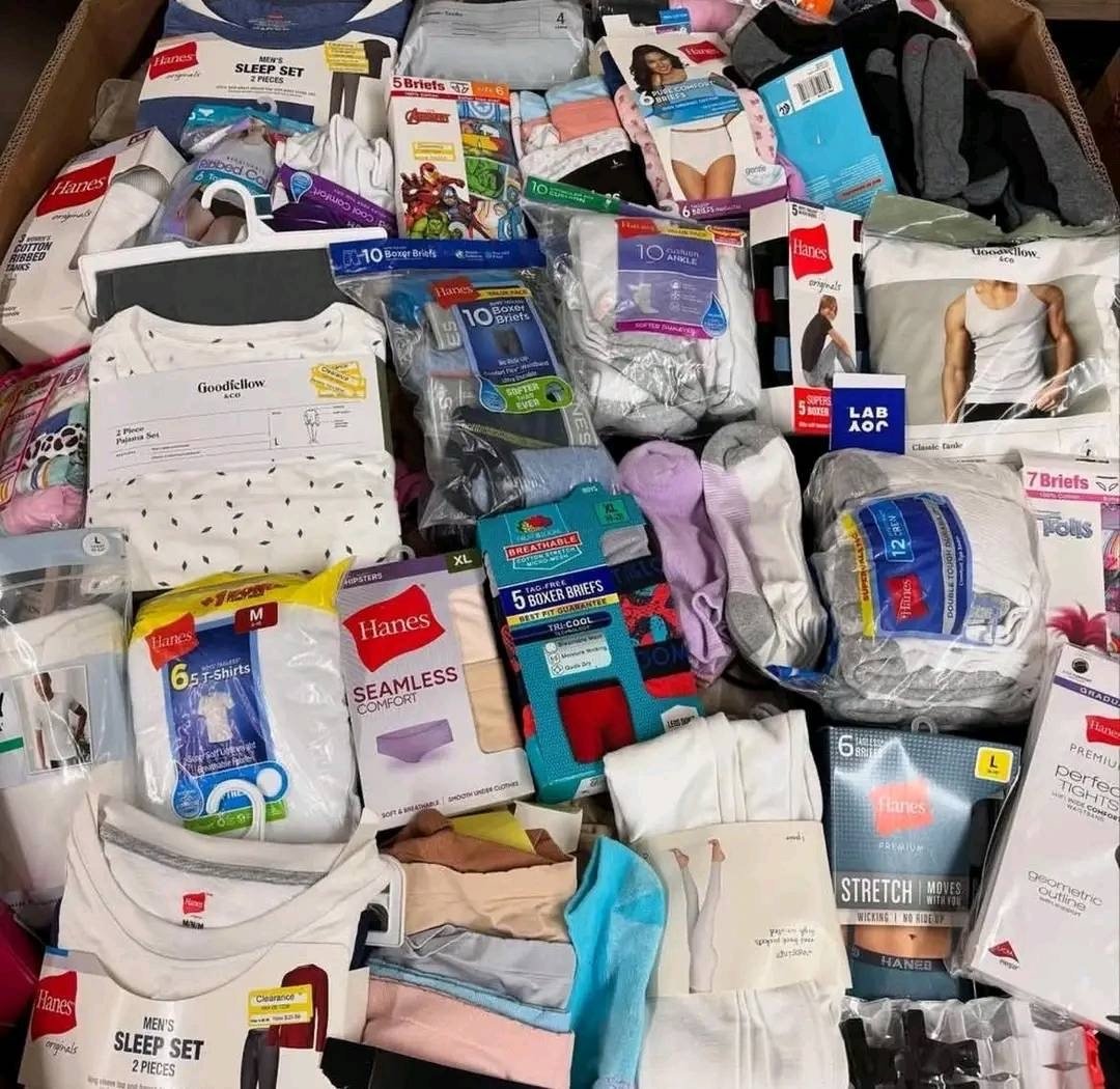 Category: Mixed clothing (men, women, and/or children depending on stock availability)