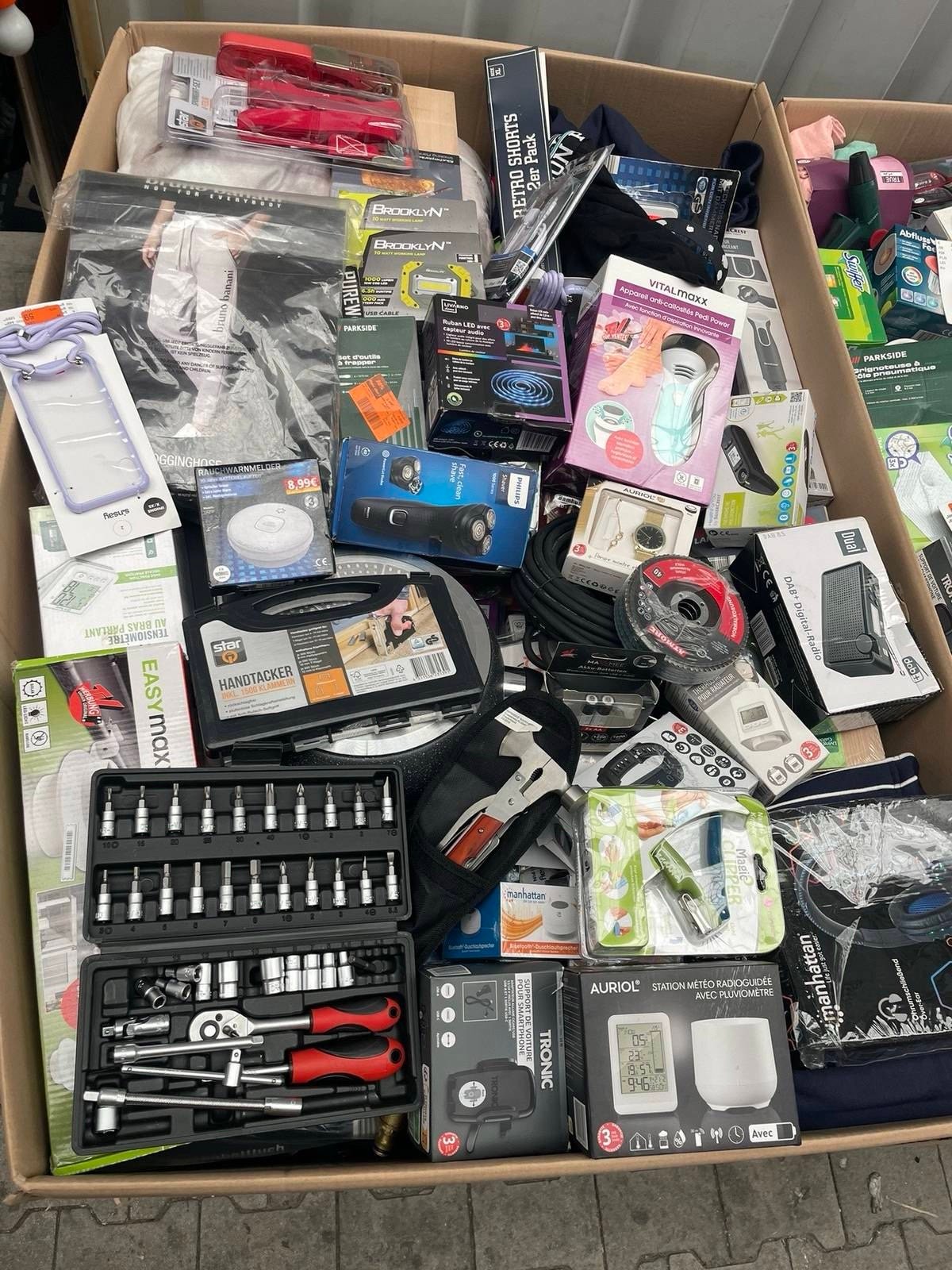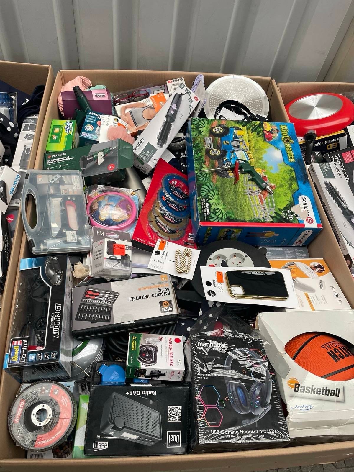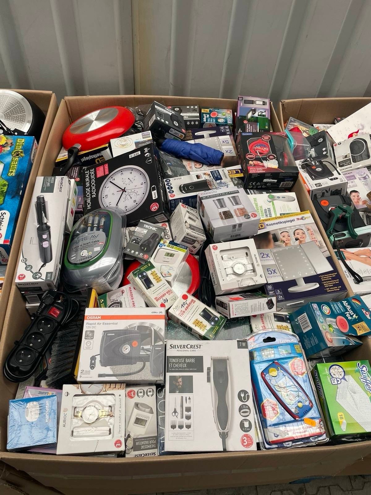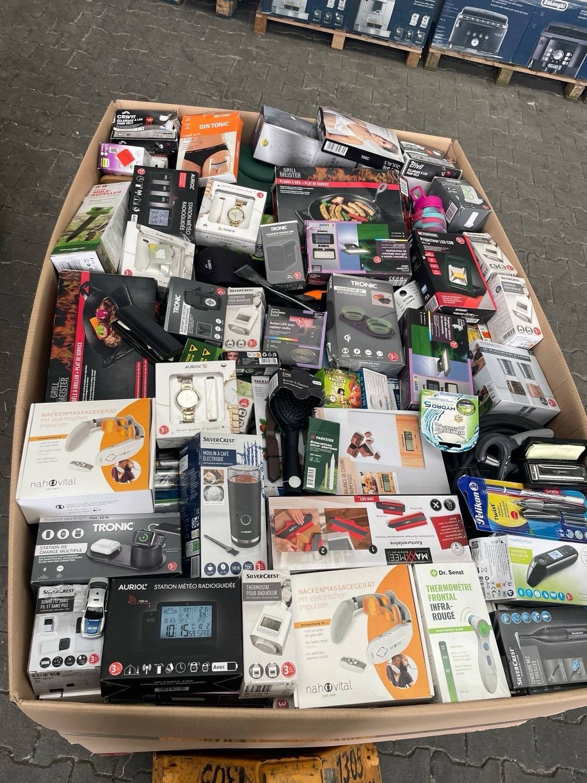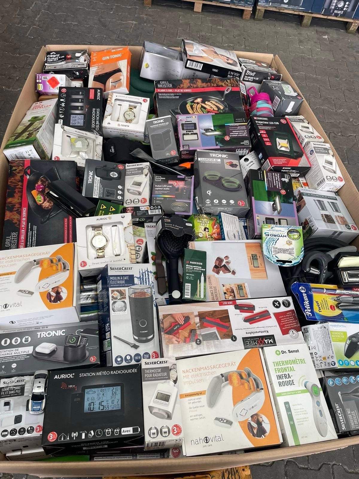 The pallet includes products from well-known brands such as SilverCrest, Tronic, Auriol, and Dr. Senst.