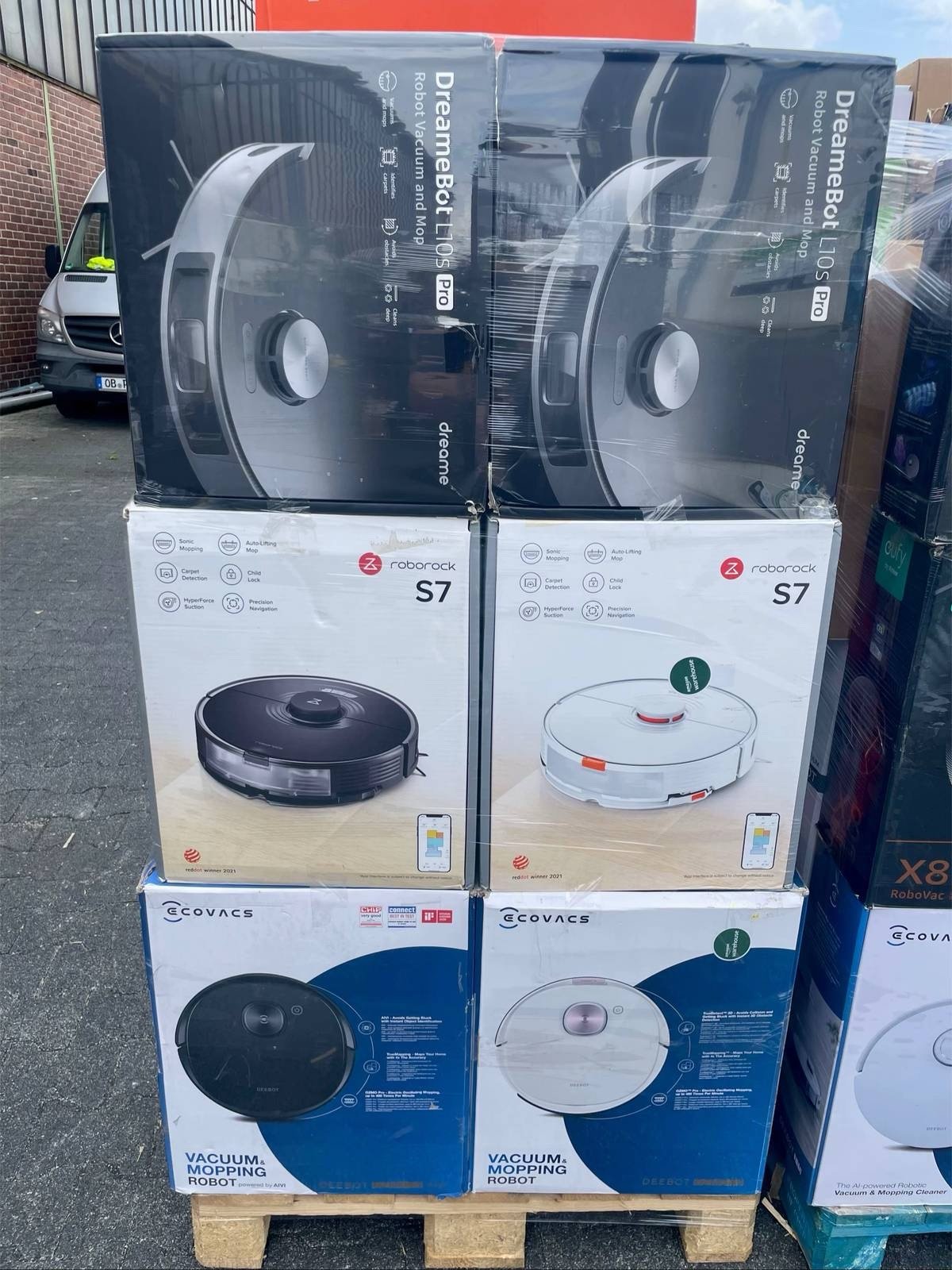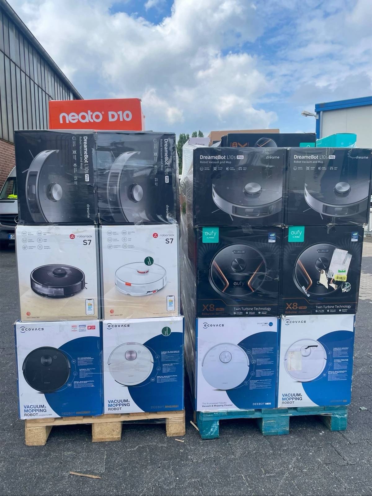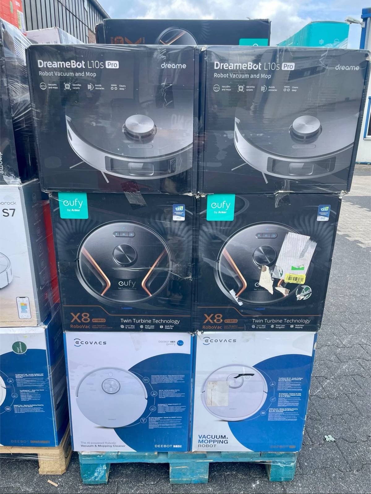 Each pallet includes a mix of robotic vacuum cleaners and accessories, offering excellent resale potential for both local and online markets.