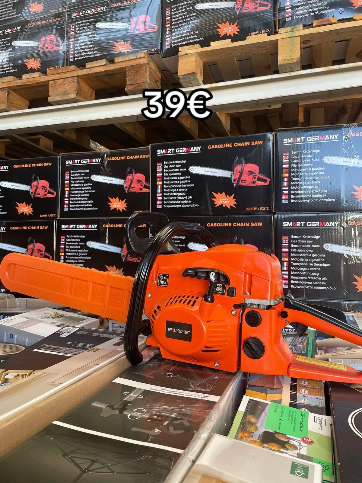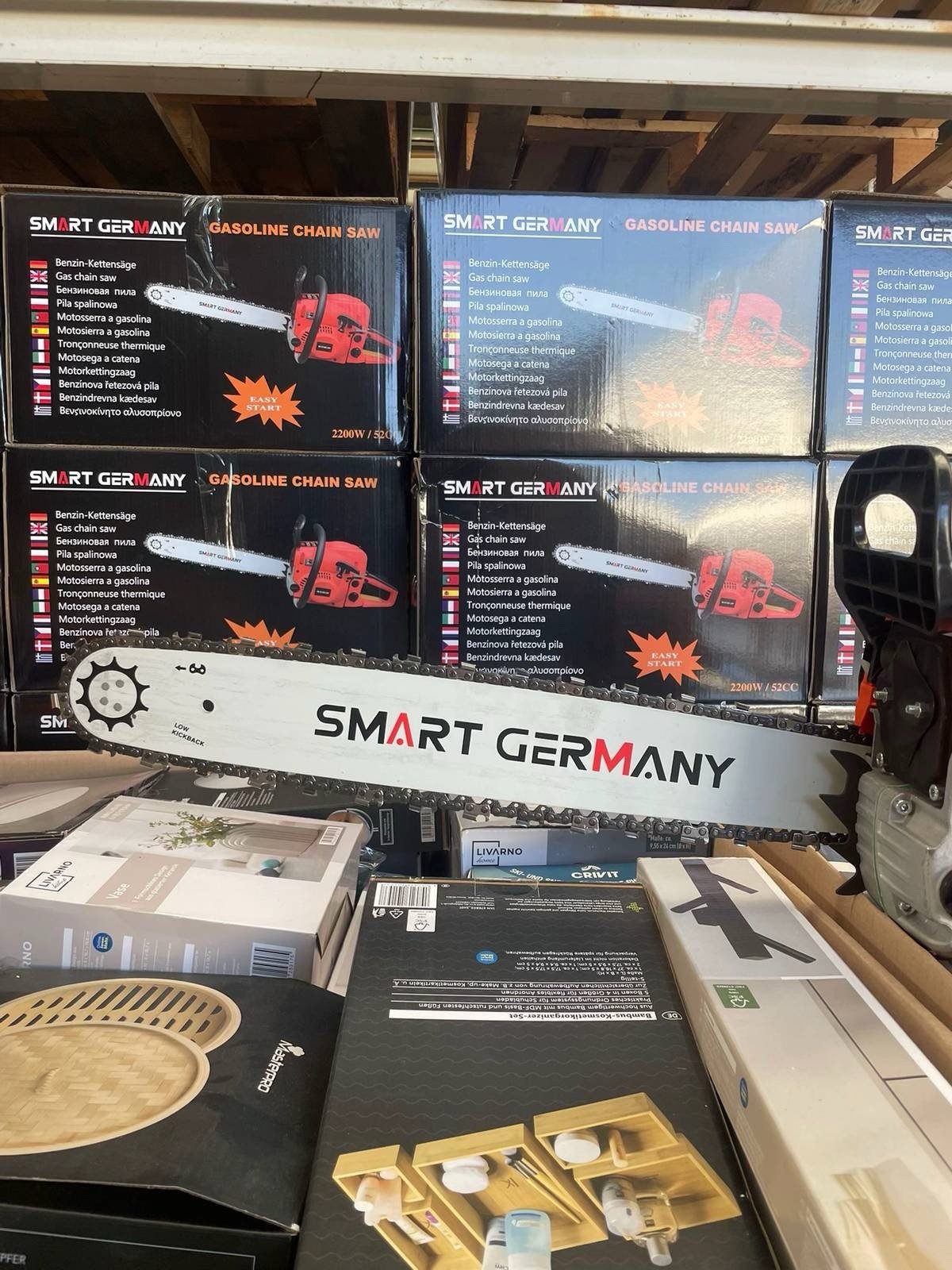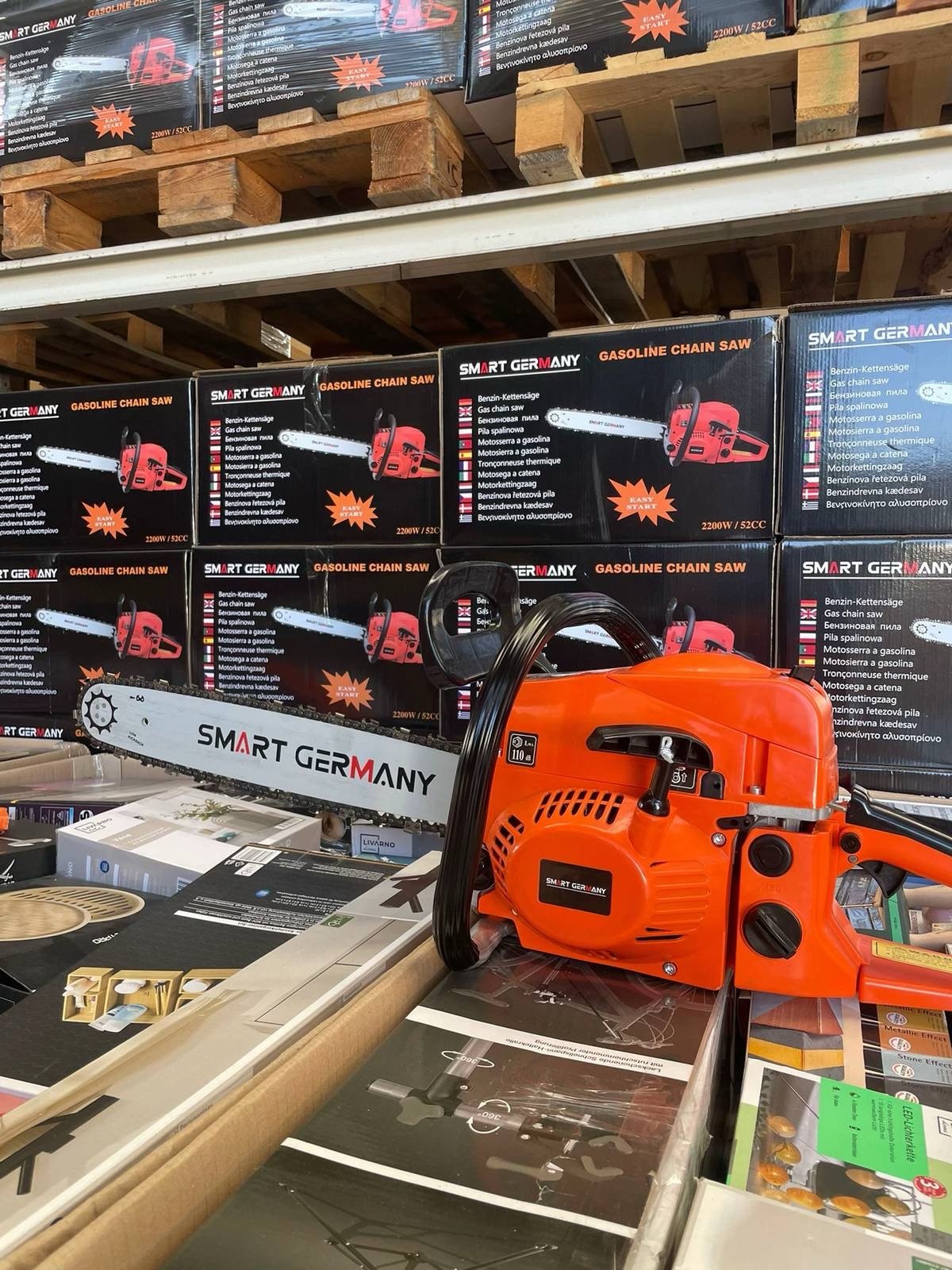 Our Smart Germany Chainsaw Pallets include a selection of powerful and reliable chainsaws designed for forestry work, gardening, and professional wood cutting. These pallets are sourced from overstock inventories, retail liquidations, and customer returns, offering resellers the opportunity to purchase high-demand tools at competitive wholesale prices.